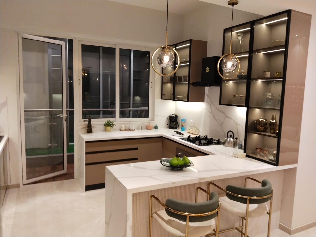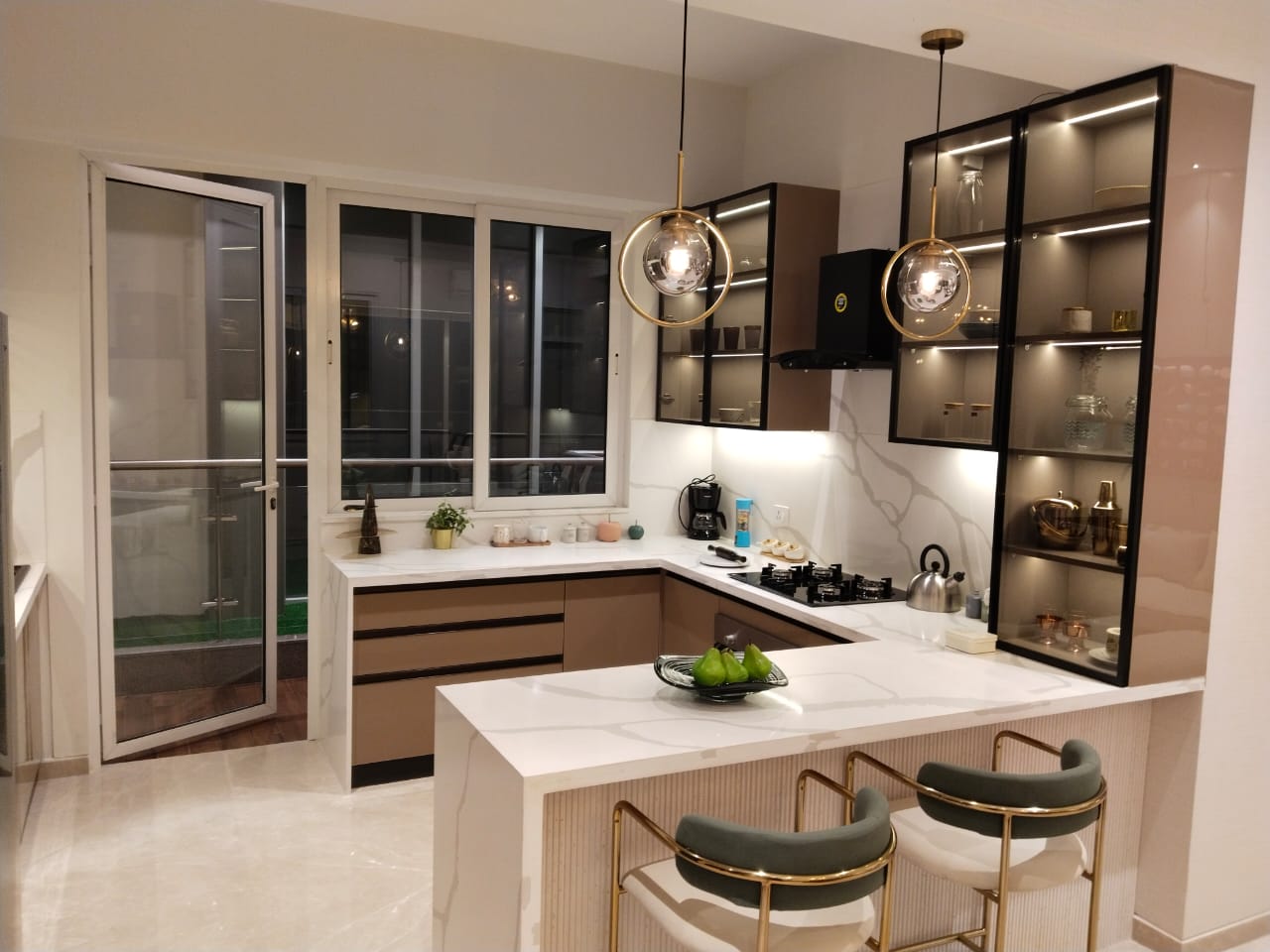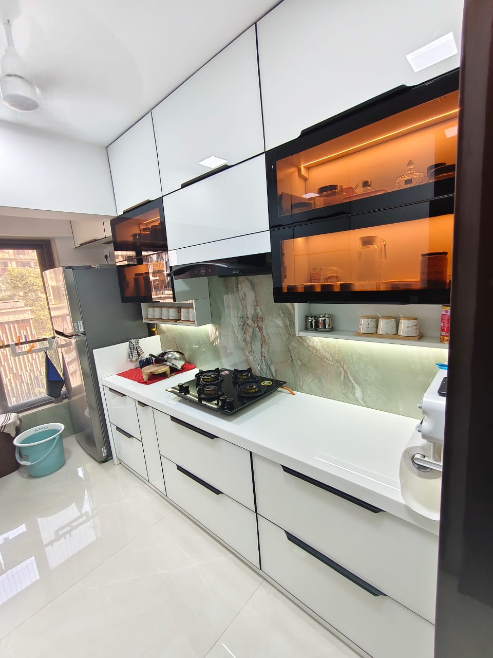 Different types of modular kitchens including L-shaped, U-shaped, island shaped, straight line, designer, metal, and stainless steel kitchens. It provides details on the features, specifications, and benefits of L-shaped, U-shaped, and island shaped modular kitchen designs.