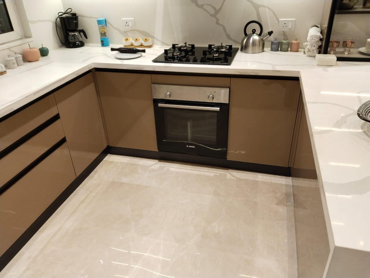 Common components, advantages, planning, design, storage, appliances, materials, and flooring options for modular kitchens.